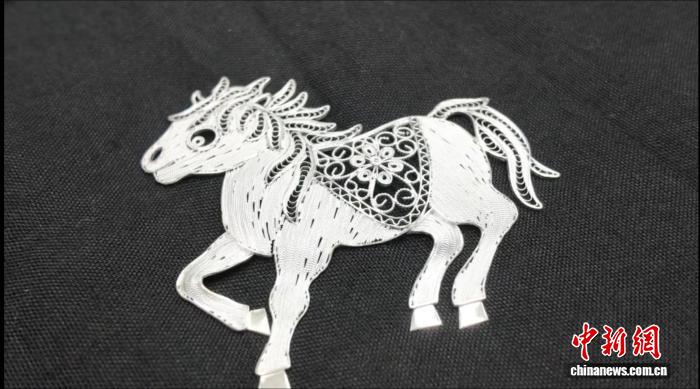 作为年轻一代手艺人,王晓璐在坚守传统中努力创新。“成都银花丝以素银本色为特色,我们保留着这一传统。”她说,团队打破花鸟鱼虫传统题材,融入生肖、国潮等元素,马年推出珐琅马纹银丝盘、飞马胸针等作品,还借鉴徐悲鸿笔下马的图案,通过丝线走向调整凸显肌肉感与灵动性。