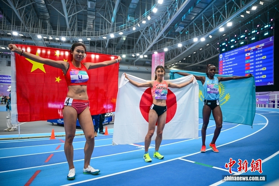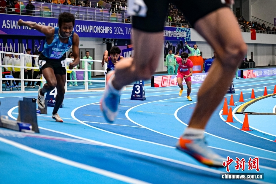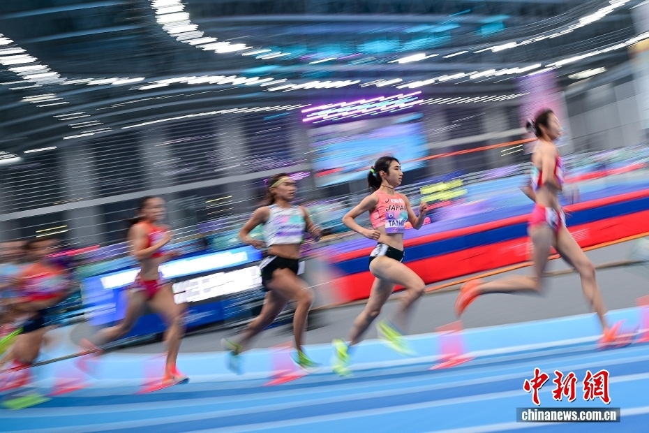 2月6日晚,天津,日本选手田中希实(右二)在女子1500米决赛中,最终夺得冠军。当日,第十二届亚洲室内田径锦标赛在天津团泊体育中心田径馆开赛。本届赛事为期三天,设置26个竞赛小项,来自亚洲35个国家和地区的300余名运动员参加。