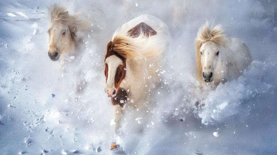 内蒙古赤峰:骏马踏雪飞驰乌兰布统草原