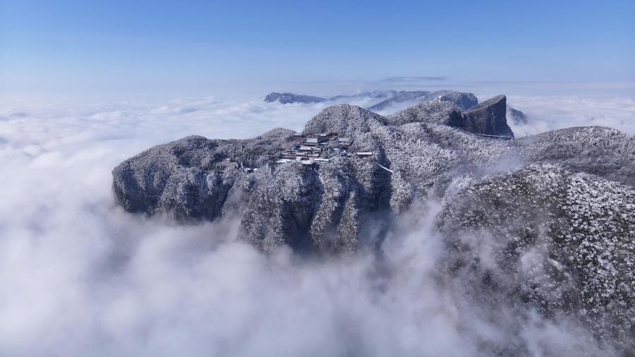 雾凇云海同框 湖南张家界天门山现冬日限定奇观