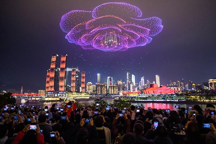 元旦假期 重庆无人机灯光秀点亮绚丽夜空