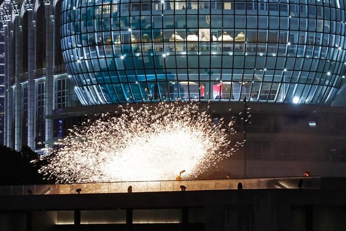 千年非遗“打铁花”表演亮相上海黄浦江
