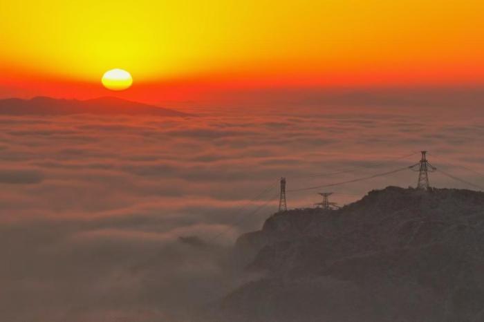 湖北巴东:日出映雪景 云海如仙境
