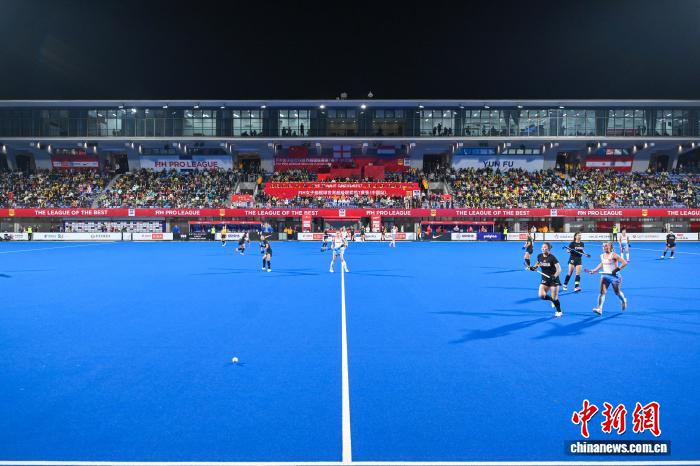 2月5日晚,FIH女子曲棍球世界超级联赛第七赛季(中国站)赛事在广东云浮开赛。首场比赛中,中国队(黑衣)0比3不敌荷兰队(白衣)。图为市民现场观赛。中新社记者 陈骥旻 摄