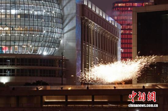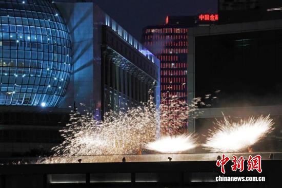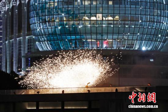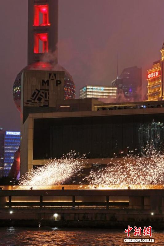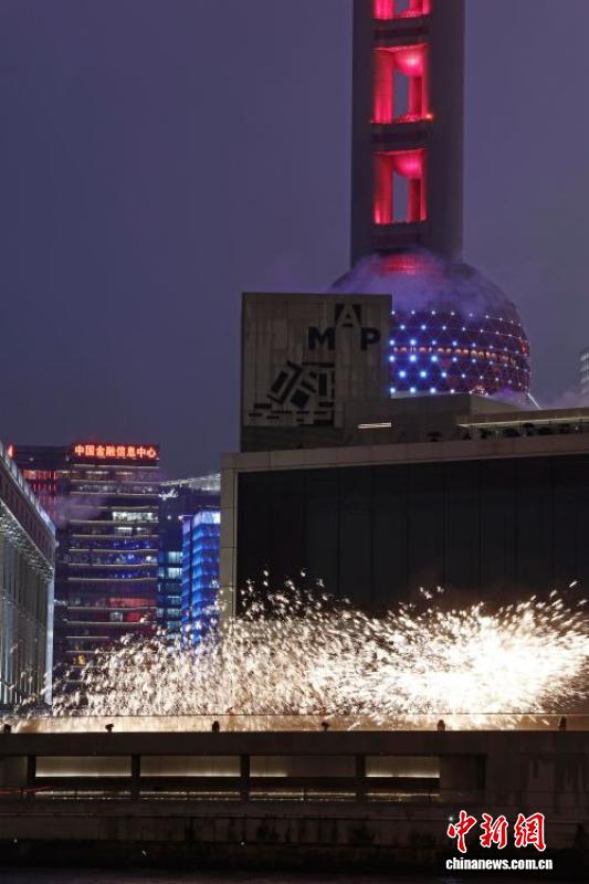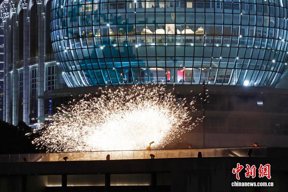 千年非遗“打铁花”表演亮相上海黄浦江畔