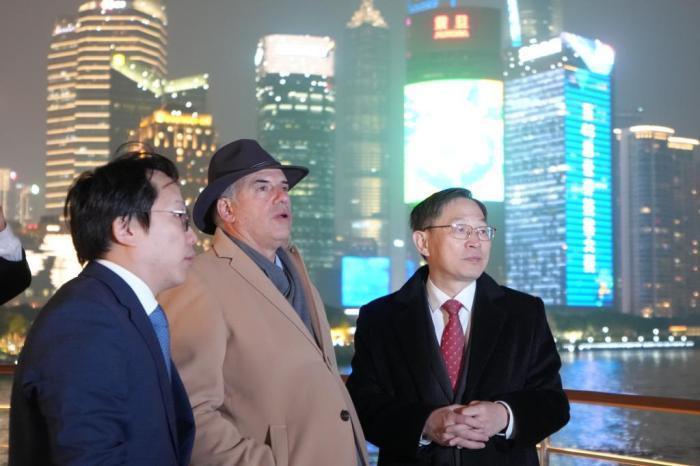 乌拉圭总统奥尔西夜游上海黄浦江